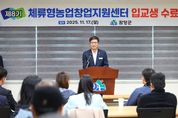 (포탈뉴스통신) 함양군 체류형농업창업지원센터(이하 센터) 제8기 입교생 36명(29세대)이 11월 17일, 9개월 간의 교육을 마치고 수료식을 가졌다. 이번 제8기 입교생은 지난 3월 귀농귀촌 전문교육을 시작으로, 안정적인 영농 활동을 위한 실습농장에서의 텃밭 교육, 관내 선도 농가와 연계한 품목별 현장 실습 교육을 실시하였고, 영농 활동의 체계적인 계획 수립을 위한 귀농 창업 활성화 기본 교육을 진행했다. 함양군 체류형농업창업지원센터의 대표 교육과정인 ‘귀농귀촌 생활기술교육’도 이번 기수에서는 변화가 있었다. 농촌 생활에서의 사기 피해 예방 및 안전 생활 수칙을 사례로 알아보고, 스스로 만들어 가는 농촌주택 전기의 기초, 농촌주택 리모델링, 생활 밀착형 목공 기술, 전통 장류 만들기 등 귀촌 생활에 필요한 것들과 영농에 필요한 비닐하우스 간이 설치, 생활 용접 기초 등 다양한 수업 내용에 입교생들이 매우 만족했다. 또한, 품목별 현장 실습 교육을 통한 성과 발표 및 전시로 교육의 성과를 뽐냈으며, 9개월 간의 교육과정을 영상으로 시청할 때는 지난 시간에 눈시울을 붉히는 입교생도 있어, 센터에서 교육뿐 아니라