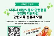 (포탈뉴스통신) 전남 나주시가 교통사고 위험에 노출된 배달노동자의 안전을 강화하고 사고 예방을 위한 지원에 나선다. 나주시는 배달노동자의 안전한 노동환경 조성을 위해 배달노동자 안전용품 구입비 지원사업을 추진하고 이륜차 교통안전교육을 실시한다고 18일 밝혔다. 시는 2025년에 이어 2026년에도 고용노동부 ‘취약노동자 일터개선 지원사업’ 연장 심사 선정됨에 따라 상반기 사업을 추진하며 나주시에 거주하는 배달노동자 20명을 대상으로 안전용품 구입비를 1인당 최대 20만 원까지 지원한다. 이번 사업은 배달 과정에서 발생할 수 있는 이륜차 교통사고를 예방하고 배달노동자의 안전한 노동환경을 조성하기 위해 마련됐다. 안전교육은 한국도로교통공단 광주전남지부 전문 강사를 초빙해 실제 사고 사례 중심의 이륜자동차 교통안전교육으로 진행된다. 교육을 2시간 이수한 배달노동자에게는 헬멧과 오토바이 블랙박스, 헬멧용 블루투스 헤드셋 등 안전용품 구입비를 지원한다. 지원 대상은 공고일 기준 나주시에 주민등록 주소를 두고 활동 중인 배달노동자로 배달대행업체 소속 기사뿐 아니라 사업장에서 직접 고용