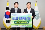 (포탈뉴스통신) 담양군은 18일 군청에서 NH농협 제휴카드 적립기금 전달식을 개최했다. 이번에 전달된 적립기금은 약 4,700여만 원으로, 담양군과 NH농협 간 제휴카드 협약에 따라 조성됐다. 이 기금은 카드 이용 실적에 따라 NH농협에서 조성해 매년 담양군에 전달하는 것으로, 군이 지난 한 해 공무 수행에 사용한 보조금 전용카드와 소속 공무원의 복지카드, 각종 단체에서 발급한 보조금 카드 이용 금액의 0.1~1.0%가 포인트로 적립돼 마련됐다. 군은 전달받은 기금을 세입 처리해 지역사회 발전과 군민 복리 증진을 위한 재원으로 활용할 계획이다. 정철원 군수는 “NH농협과의 협력을 통해 조성된 소중한 기금인 만큼 군민 복리 증진과 지역 발전을 위해 의미 있게 사용하겠다”며 “앞으로도 NH농협 담양군지부가 지역사회와 상생하며 함께 발전해 나가길 기대한다”라고 말했다. [뉴스출처 : 전라남도 담양군]