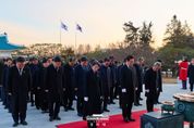 (포탈뉴스통신) 이재명 대통령은 2026년 병오년 새해 첫날, 국립서울현충원 참배로 공식 일정을 시작했다. 참배식에는 김민석 국무총리 및 국무위원·장관들과, 강훈식 대통령비서실장을 비롯한 청와대 참모진이 함께했다. 먼저 이 대통령은 현충탑에 헌화·분향한 뒤 묵념하며 순국선열과 호국영령의 넋을 기렸다. 이어 방명록에 '“함께 사는 세상” 대한민국 대도약의 원년 대한국민과 함께 열겠습니다'라고 서명하면서 병오년 새해 의지를 담았다. 참배 이후 이 대통령은 청와대 직원식당에서 현충원 참배 참석자들과 떡국으로 조찬을 하며 덕담을 나눴다. 국립서울현충원 참배(이재명tv 유투브) [뉴스출처 : 청와대]