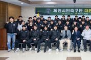 (포탈뉴스통신) 제천시민축구단 선수단과 구단주의 공식 대면식이 지난 11일 제천시청에서 열렸다. 오는 24일 창단식을 앞두고 열린 이번 대면식에는, 구단주인 김창규 제천시장과 김용기 단장, 선수단 등 관계자들이 참석했다. 선수와 코치진 구성을 마친 제천시민축구단은 구단주와 공식적으로 첫인사를 나누고, 팀의 운영 방향과 시즌 목표를 공유했다. 대면식은 선수단과 코치진 소개, 이번 시즌 운영 계획과 목표 발표, 질의응답 순으로 진행됐다. 김창규 제천시장은 인사말을 통해 선수단을 격려하며, “제천시를 대표하는 시민구단으로서 책임감을 가지고 모든 경기에 최선을 다해달라”고 당부했다. 김용기 단장은 구단 운영 방침과 비전을 소개하며, “제천시와의 협력을 바탕으로 투명하고 신뢰받는 구단을 만들어가겠다”라고 의지를 밝혔다. 한상구 감독은 “2026시즌 목표로 K4리그 상위권 진입과 리그컵 및 코리아컵 3라운드 이상 진출, 충청북도 대표 선발전 승리를 통한 전국체전 우승에 도전하겠다”라며 각오를 밝혔다. 공격수 손주원 선수는 개인 목표를 밝히며, “매 경기 공격 포인트를 기록해 팀에 기여하겠다”라며
