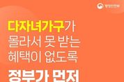 (포탈뉴스통신) ■ 다자녀가구가 몰라서 못 받는 혜택이 없도록 정부가 먼저 챙겨드립니다! ▷ 혜택알리미 - 내가 몰라도 찾아서 알려주는 개인 맞춤형 알림 서비스 · 다자녀 국가장학금 · 사회적 배려대상자 도시가스요금 경감 · 전기 요금 복지할인 · 에너지복지요금 지원 · 다자녀가구 자동차취득세 감면 ※ 소득, 거주지 등 개인별 상황에 따라 받을 수 있는 혜택은 달라질 수 있어요. ■ 청년이 몰라서 못 받는 혜택이 없도록 정부가 먼저 챙겨드립니다! ▷ 혜택알리미 - 내가 몰라도 찾아서 알려주는 개인 맞춤형 알림 서비스 · 청년 일경험 지원 · 청년농 창업투자 심층 컨설팅 · 청년주택드림 청약통장 · 청년 월세 한시 특별 지원 · 청년 문화예술패스 지원 ※ 소득, 거주지 등 개인별 상황에 따라 받을 수 있는 혜택은 달라질 수 있어요. ■ 어르신이 몰라서 못 받는 혜택이 없도록 정부가 먼저 챙겨드립니다! ▷ 혜택알리미 - 내가 몰라도 찾아서 알려주는 개인 맞춤형 알림 서비스 · 65세 이상 폐렴구균 국가예방접종사업 · 노인 무릎인공관절 수술 지원 · 노인 일자리 및 사회활동 지원 · 의료급여