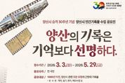 (포탈뉴스통신) 양산시는 시 승격 30주년을 기념하여 양산시 민간기록물 수집 공모전 ‘양산의 기록은 기억보다 선명하다’를 개최한다. 참여 대상자는 지역 제한 없이 1996년 이전 양산의 역사·문화, 풍경, 일상생활, 마을 기록, 행정 기록 등 옛 모습을 간직한 양산 관련 기록물을 소장한 사람이라면 누구나 참여할 수 있다. 공모 기간은 2026년 3월 3일부터 5월 29일까지 약 3개월간 진행되며, 참여 방법은 양산시 홈페이지 고시 공고 게시판에서 신청서를 내려받아 작성 후, 직접 양산시청 종합민원과로 방문하거나 우편으로 접수하면 된다. 공모작은 심사를 거쳐 대상 1명(200만원), 최우수 2명(100만원), 우수 3명(50만원), 장려 5명(10만원) 총600만원의 상금을 지급할 계획이다. 수상작은 시 승격 30주년 기념 기획전시 및 전자도록, 상설아카이브 구축, 권역별 순회 전시 등으로 활용될 예정이다. 양산시 관계자는 “기록 없인 역사도 없다는 말이 있다. 이번 민간기록물 수집 공모전을 통해 우리 양산시의 정체성과 자긍심을 높이고, 보존가치가 있는 민간기록물의 소실을 막아 미래 기록유산으로 활용될 수 있도록
