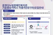 (포탈뉴스통신) 파주시 운정다누림장애인복지관은 지역 내 장애인의 기능 향상과 일상생활 능력 증진을 위해 ‘기능향상서비스’참여자를 오는 23일부터 상시 모집한다. 모집 대상은 주민등록등본상 파주시에 거주하는 장애인으로, 서비스 영역별 특성에 따라 대상이 구분된다. 운동기능향상, 로봇재활, 작업기능향상 서비스는 모든 연령의 뇌병변·지체·발달장애인을 대상으로 하며, 감각통합기능향상은 2세부터 12세 아동, 언어기능 향상은 2세부터 학령기 중학생까지 신청할 수 있다. 기능향상서비스는 영역별 전문 재활 프로그램으로 구성되어 이용자의 특성과 욕구를 반영한 맞춤형 서비스를 제공한다. 주요 내용으로는 ▲운동기능향상(운동발달능력 향상 및 기능적 움직임 훈련) ▲로봇재활(보행기능 회복을 위한 맞춤형 보행훈련) ▲작업기능향상(일상생활활동 및 인지·상지 기능 훈련) ▲감각통합기능향상(감각조직화 및 적응반응 촉진) ▲언어기능향상(장애특성 및 주된 불편 증상을 고려한 의사소통 능력 향상) 등이 있다. 이용은 주 2회(회당 30분) 기준이며, 회당 9,000원~12,000원으로 서비스별 상이하다. 로봇재활은 6개월(최대 1년), 그 외