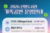 (포탈뉴스통신) 천안시 신방도서관은 가족특화도서관의 특성을 살려 연중 온 가족이 함께 즐길 수 있는 ‘2026 가족 공연’ 프로그램을 운영한다고 5일 밝혔다. 이번 프로그램은 3월부터 12월까지 총 5회에 걸쳐 인형극, 마술쇼, 미디어아트, 뮤지컬 등 다양한 장르로 꾸며진다. 주요 일정으로는 △3월 21일 새 학기 인성교육 영어인형극 ‘거꾸로 시계’ △5월 2일 가정의 달 특집 ‘패밀리 매직쇼’ △7월 4일 미디어아트와 마술이 어우러진 ‘벌룬쉐프의 동화 이야기’ △10월 17일 마술공연 ‘신비한 책 박물관’ △12월 12일 환경 보호 어린이 뮤지컬 ‘쥬토피아’ 순으로 진행된다. 공연 접수는 공연 2~3주 전 천안시도서관 누리집을 통해 가능하다. 자세한 사항은 천안시도서관 누리집 또는 전화로 문의하면 된다. 신방도서관 관계자는 “도서관에서 마련한 다채로운 공연을 통해 가족 간 친밀하게 소통하고 즐거운 추억을 쌓길 바란다”고 말했다. [뉴스출처 : 충청남도 천안시]