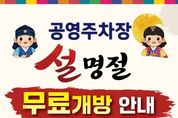 (포탈뉴스통신) 천안도시공사는 설 연휴기간 공영주차장을 무료로 개방한다고 5일 밝혔다. 무료개방 기간은 오는 15일부터 18일까지 4일이다. 무료 개방 대상 주차장은 △제1·2·5공영주차장 △신부 제1·4·5공영주차장 △두정역 제1공영주차장 △두정 제1공영주차장 △명동 공영주차장 △대흥 제1공영주차장 △노태공원 공영주차장이다. 목천 캠핑카 전용주차장은 무료 개방 대상에서 제외된다. 공사는 무료 개방 기간동안 시설물 순회 점검을 강화하고, 주차 질서 위반 및 장기 주차 차량에 대해 단속을 실시할 예정이다. 만차 제어시스템도 정상 운영해 안전하고 쾌적한 주차 환경을 제공할 예정이다. 신광호 천안도시공사 사장은 “설 명절을 맞아 전통시장과 지역 상권을 찾는 시민들께서 주차 걱정없이 편리하게 이용하시기를 바란다”며 “지역 상권 활성화에도 도움이 되기를 기대한다”고 말했다. [뉴스출처 : 충청남도 천안시]