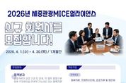 (포탈뉴스통신) 세종시문화관광재단은 4월 한달 간 세종시의 관광산업과 MICE(회의·포상관광·컨벤션·전시)산업 활성화를 위한 민·관·학 협력 네트워크인 ‘세종 관광·MICE 얼라이언스’의 신규 회원사를 모집한다고 밝혔다. ‘세종 관광·MICE 얼라이언스’는 세종 지역의 관광·MICE 행사 경쟁력을 강화하고 유기적인 협력 체계를 구축하기 위해 운영되는 협의체이다. 현재 지자체, 학계, 호텔, MICE 서비스, 관광지 등 다양한 분야의 기관 및 업체 41곳이 참여하여 활발한 협력을 이어가고 있다. 이번 모집은 ▲정책분과(관광MICE 관련 정부기관, 지자체, 공공기관 및 협단체) ▲관광분과(관광사업체, 여행업, 숙박업, 외식업, 운수송업, 쇼핑, 레저, 체험, 의료) ▲MICE분과(컨벤션시설, 유니크베뉴, 기획업, MICE 서비스)를 포함한다. 얼라이언스 회원사에게는 ▲재단 관광사업실 추진 사업 참여기회 제공 ▲관광마케팅 및 MICE 행사 유치·개최 지원사업 연계를 통한 비즈니스 기회 제공 ▲얼라이언스 회원사 간의 네트워킹 및 정보 공유 등의 다양한 혜택이 주어진다. 특히 재단의 ‘2026 세종 MICE