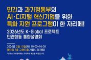 (포탈뉴스통신) 과학기술정보통신부는 인공지능·디지털 혁신기업의 성장을 지원하기 위한 과기정통부 지원사업들을 한자리에서 설명하는 '한국형 국제 사업(K-글로벌 프로젝트) 민·관 합동 통합설명회'를 2월 10일 오전 10시부터 서울 양재 엘타워에서 개최한다. 통합설명회에서는 인공지능·디지털 창업 초기 기업(스타트업)의 성장 단계별 지원을 위한 지도'멘토링'(1개), 규모 확대'스케일업'(9개) 및 해외 진출(16개) 지원사업, 시험대(테스트베드)와 같은 기반 시설(인프라) 지원사업(2개), 인공지능·데이터·인터넷 기반 자원 공유(클라우드) 등과 같은 디지털 자원 지원사업(3개) 등 총 5개 유형 31개 사업(1,441억 원 규모)에 대한 설명이 있을 예정이다. 동 행사에서는 사업별 전담 기관에서 사업 내용 및 추진 방향 등에 대해 발표를 진행하고, 설명회에 참여한 인공지능·디지털 혁신 기업들이 보다 자세한 정보를 얻을 수 있도록 상담 창구(상담 부스)도 일부 운영할 계획이며, 올해는 기존 참여 민간기관들 외에 엔비디아, 아산나눔재단, 하나은행이 참여하는 등 총 9개 민간기업 및 기관에서 참석해 각 기관에서 운영하는 인공지능·디