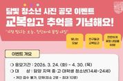 (포탈뉴스통신) 담빛청소년문화의집은 개학을 맞아 지역 청소년들의 학교생활과 성장의 순간을 기록하고, 또래와의 소중한 추억을 사진으로 남길 수 있도록 ‘담빛 청소년 사진 공모 이벤트’를 개최한다고 밝혔다. 이번 공모전은 ‘교복 입고 빛나는 지금을 기념하다’를 주제로, 청소년들이 교복을 착용한 단체 사진과 사연을 함께 제출하는 방식으로 진행된다. 특히 이번 공모전은 담양의 자연과 문화, 그리고 교복이라는 일상적 상징을 배경으로 청소년들의 일상을 기록하는 지역 특화 프로그램으로, 지역에 대한 관심을 높이고 새로운 시선으로 바라볼 수 있도록 기획됐다. 공모 기간은 3월 24일부터 4월 30일 오후 6시까지이며, 담양 지역 중·고등학생 및 대학생(14~24세)이 참여할 수 있다. 응모 작품은 교복을 착용한 단체 사진이어야 하며, 담양 관내에서 촬영한 사진만 인정된다. 담양 관광명소 또는 담빛청소년문화의집을 배경으로 촬영하면 가산점이 부여된다. 참여는 온라인 신청(네이버 폼)을 통해 가능하며, 자세한 사항은 담빛청소년문화의집 공식 누리집에서 확인할 수 있다. 군 관계자는 “청소년들이