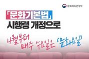 (포탈뉴스통신) 「문화기본법」 시행령 개정으로 4월부터 매주 수요일은 '문화요일' - 3월 3일(화) 「문화기본법」 시행령 개정안 국무회의 의결 '문화가 있는 날'을 매달 마지막 수요일에서 '매주 수요일'로 확대하는 「문화기본법」 시행령 개정안이 3월 3일(화) 국무회의에서 의결됐습니다. ■ 모두가 함께 만드는 '수요일 특화 문화프로그램' - 민간 기관 수요일 문화프로그램을 운영하고자 하는 모든 민간 기관은 '문화요일' 참여 기관으로 등록 가능 - 국공립 문화예술기관 기관별 특색을 살린 '수요일 특화 기획 프로그램'을 강화해 일상 속 문화 향유 기회 확대 - 지자체 일부 지자체에서는 한옥, 농악, 공방 등 지역 고유의 문화 자산과 연계한 '지역 특화 프로그램' 강화 ■ 온라인 문화향유 기회 확대 국민들이 '문화가 있는 날'을 일상에서 체감할 수 있는 온라인 소통의 장을 마련하고, 매주 수요일이 '나의 문화요일'로 자리 잡을 수 있도록 다채로운 참여 행사 진행 ■ 업계의 자율성에 따른 문화혜택 운영 일회성 지원 확대보다 현장의 자율성과 지속 가능성을 존중하는 방향으로 정책 구