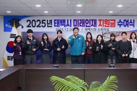 (포탈뉴스통신) 태백시 지난 26일 시청 소회의실에서 2025년 태백시 미래인재 신규 선발자와 그 가족 등이 참석한 가운데 미래인재 지원금 및 인증패 수여식을 개최했다. 2025년 태백시 미래인재는 지난 16일 미래인재육성위원회 심의를 통해 개인 8명과 단체 1팀이 선발됐다. 이번 수여식을 통해 올해 선발된 미래인재들에게는 지원금 지급증서와 인증패가 수여됐으며, 300만 원의 지원금이 지원될 예정이다. 올해 선발된 미래인재는 1년차 300만 원을 포함하여 향후 실적 평가에 따라 2‧3년차 각 100만 원씩 최대 3년간 500만 원 한도 내에서 지원받는다. 선발된 미래인재는 다음과 같다. △ 체육〔정지원(태권도), 최효주(태권도), 변근범(우슈), 황의제(스키), 김경호(레슬링), 황지정보산업고등학교(핸드볼)〕 △ 문화예술〔김유빈(영상), 조호현(가야금병창), 윤시연(발레)〕 한편 태백시 미래인재 육성 사업은 체육·문화예술·자연과학·인문사회·기술기능 등의 분야에서 잠재력 있는 지역인재를 발굴하고자 추진되는 장학사업으로 지난 2013년부터 올해까지 개인 71명, 단체 4팀을 선발해 총