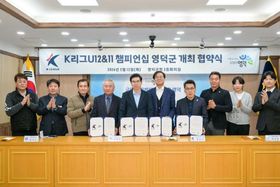 (포탈뉴스통신) 김천상무가 ‘1사 1촌 슈웅촌’ 지정식을 통해 지역 밀착형 사회공헌의 첫발을 내디뎠다. 김천상무프로축구단(대표이사 이재하)이 2월 12일 오전, 농소면 행정복지센터에서 용암 1리 ‘1사 1촌 슈웅촌’ 지정식을 진행했다. 행사에는 김종현 농소면장과 용암1리 이성수 이장을 비롯한 농소면 관계자 등이 참석했다. ‘슈웅촌’은 김천상무가 올해 새롭게 추진하는 지역 상생 프로젝트다. 단순한 방문 행사에 그치지 않고, 마을과 지속적인 관계를 이어가며 주민들의 일상 속에서 필요로 하는 도움을 함께 나누겠다는 의미를 담았다. 구단은 이를 통해 경기장을 넘어 시민의 삶 가까이에서 호흡하는 구단으로 자리매김한다는 계획이다. 첫 슈웅촌으로 지정된 용암 1리에서는 다양한 생활 밀착형 봉사활동이 펼쳐질 예정이다. 고령 주민들을 위한 이불 빨래 봉사를 비롯해, 농번기 농촌 일손 돕기 등 실제로 체감할 수 있는 지원에 힘을 보탤 계획이다. 슈웅촌 지정식에 참석한 김종현 농소면장과 용암 1리 이성수 이장은 “김천의 자랑인 김천상무가 주민들의 일상에 한 걸음 더 다가와 기쁘다. 이번 지정식을 시작으로 더욱 지역과