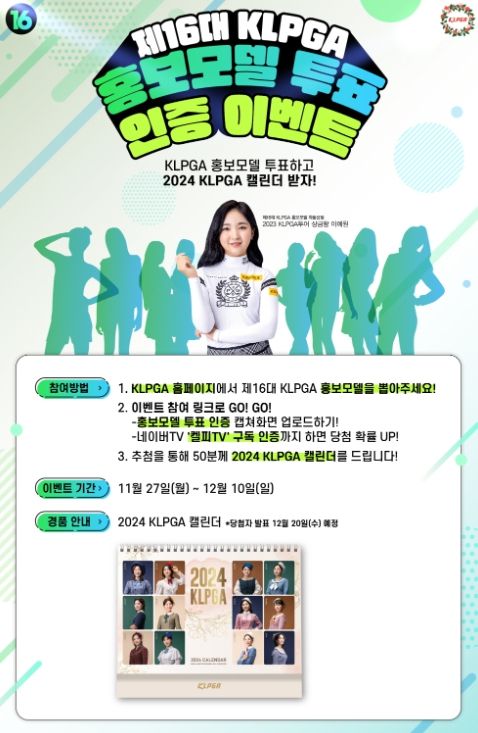 한편, ‘2024 제16대 KLPGA 홍보모델’ 온라인 투표와 더불어 같은 기간 ‘투표 인증 이벤트’도 함께 진행한다.