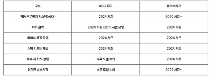 ▶ 각종 제도 2024 시즌 KBO리그 및 퓨처스리그 적용 시기 확정