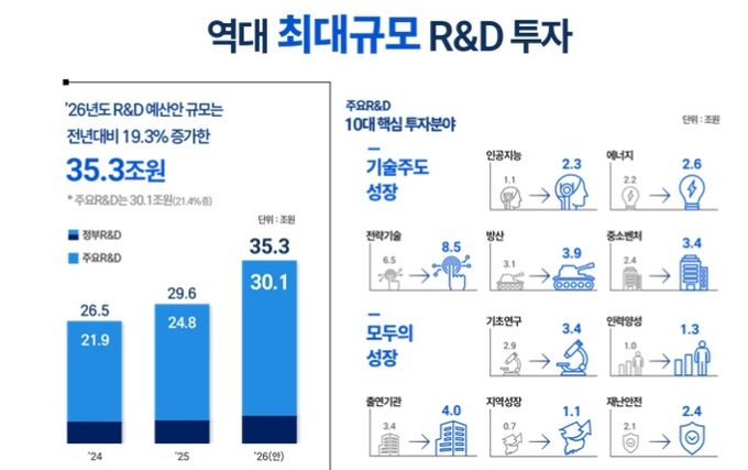 이날 회의에서는 ▲2026년도 국가연구개발사업 예산배분·조정(안)에 대한 심의·의결과 ▲새정부 AI 정책·투자방향 ▲부처별 현장·수요자 중심 2026년도 R&D 추진전략에 대해 과학기술정보통신부 등 5개 부처의 보고가 진행됐다.