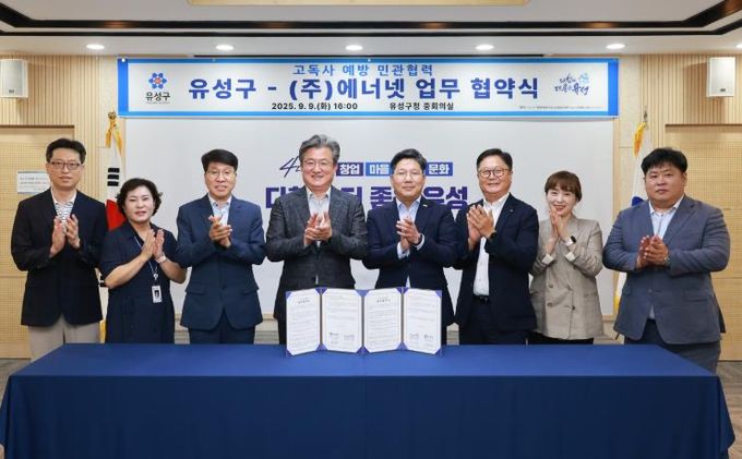 (포탈뉴스통신) 대전 유성구는 지난 9일 도시가스 고객서비스 제공 기관인 ㈜에너넷과 ‘고독사 위험군 발굴 및 지원을 위한 민관 협력 업무 협약’을 체결했다.