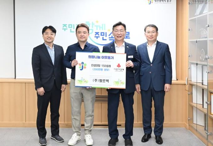 (포탈뉴스통신) 대전 중구는 9일 ㈜필로텍에서 실종예방 지원을 위한 안심양말 150켤레(200만원 상당)를 기탁했다고 밝혔다.