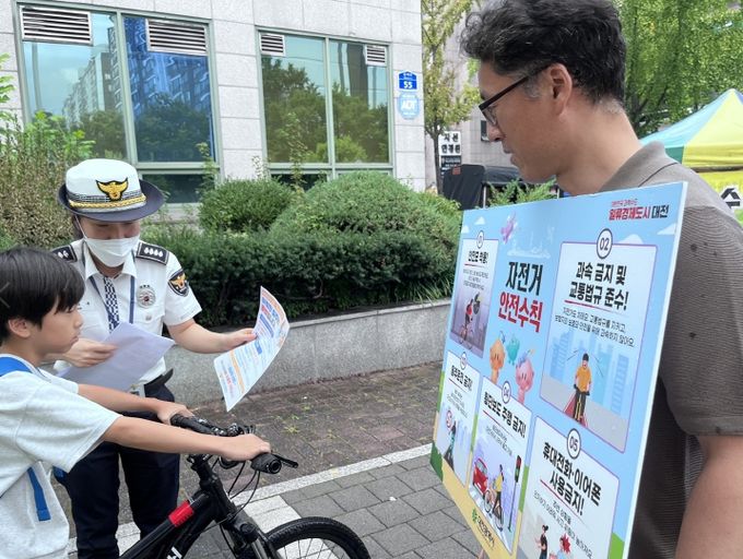 현장에서는 ▲픽시자전거 도로주행 금지 단속 ▲자전거 안전모 착용과 과속·음주운전 금지 계도 ▲보행자 무단횡단 금지 안내와 홍보물 배포가 진행됐다.