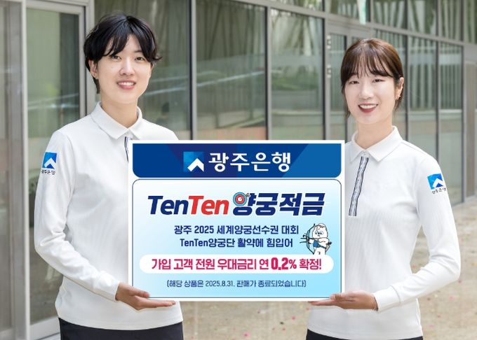 (포탈뉴스통신) 광주은행은 지난 8월 31일에 판매 종료된 ‘TenTen양궁적금’의 가입 고객 전원에게 우대금리 연 0.20%p 제공이 확정됐다고 밝혔다.