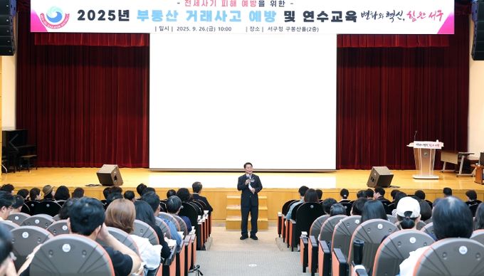(포탈뉴스통신) 대전 서구는 구청 구봉산홀에서 관내 공인중개사 200여 명을 대상으로 전세사기 피해 예방과 건전한 부동산 거래 문화 정착을 위한 교육을 진행했다고 29일 전했다.
