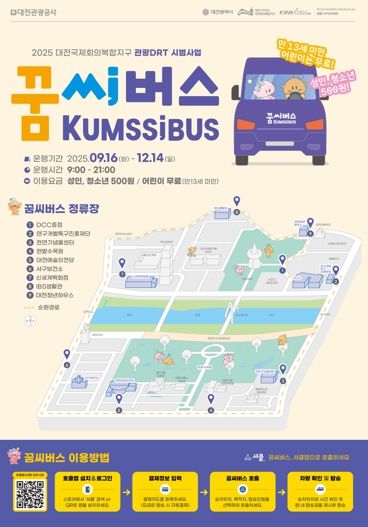 대전시는 이번 시범 사업을 “꿈씨버스”라는 이름으로 운영한다. 15인승 소형버스(12인석) 3대를 투입해 매일 오전 9시부터 오후 9시까지 운행하며, 대전컨벤션센터 제2전시장을 기점으로 천연기념물센터, 한밭수목원, 만년동 상권, 신세계백화점, 엑스포과학공원 등을 연결한다. 지정된 승·하차 지점에서 앱으로 호출하면 가까운 차량이 배정된다. 이용 요금은 500원이며, 초등학생 이하는 무료다. 이용을 원할 경우 앱스토어에서 ‘셔클앱’을 내려받아 가입 후 호출하면 된다.