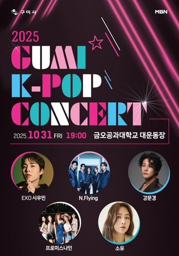(포탈뉴스통신) 구미시는 오는 10월 31일 오후 7시, 국립금오공과대학교 대운동장에서 '2025 구미 K-POP 콘서트'를 개최한다. 이번 공연은 전 세대가 함께 즐길 수 있는 야외 콘서트로 마련됐다. 아이돌·발라드·밴드·트로트까지 아우르는 폭넓은 장르의 최정상급 아티스트들이 출연해 가을밤 구미를 화려하게 수놓는다.
