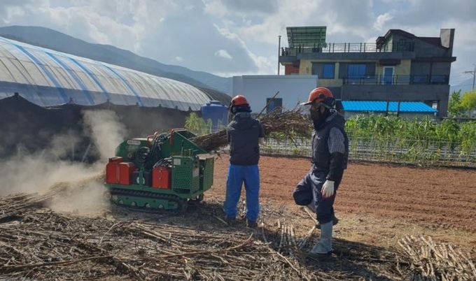 이 사업은 과수잔가지, 고춧대, 깻대 등 영농부산물을 무료로 파쇄 처리해 농가의 부담을 덜고, 불법소각으로 인한 산불과 환경오염을 예방하기 위한 것이다.