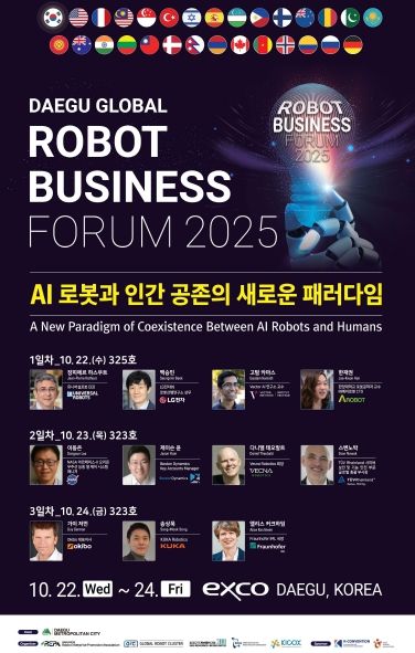 (포탈뉴스통신) 대구광역시는 ‘2025 미래혁신기술박람회(FIX 2025)’와 연계해 10월 22일부터 24일까지 3일간 엑스코 3층에서 ‘2025 대구 글로벌 로봇 비즈니스 포럼’을 개최한다.