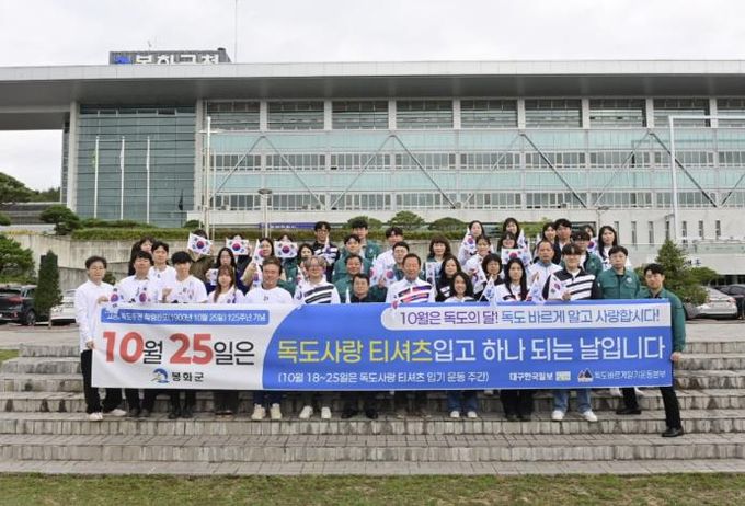 (포탈뉴스통신) 봉화군은 10월 25일 ‘독도의 날’을 맞아 군청 잔디광장에서 ‘우리 땅 독도 사랑하기 운동’을 전개하며 독도 수호 의지를 다졌다.