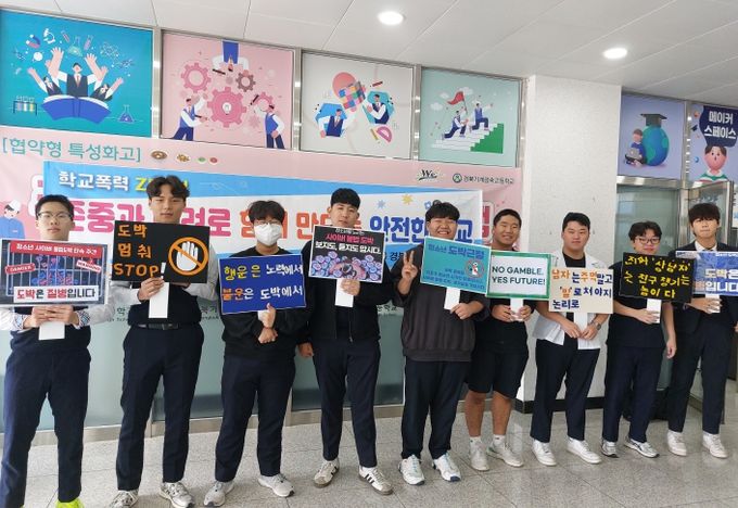 (포탈뉴스통신) 경상북도경산교육지원청은 10월 21일 ~ 22일에 사동초등학교(교장 진현식)과 경북기계금속고(교장 박창범) 정문과 급식실 앞에서 각 학교의 학생자치회 학생과 함께 “학생 안전, 학교폭력예방, 도박예방 캠페인”을 실시했다.