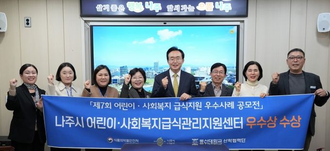 나주시는 ‘나주시 어린이 사회복지 급식관리지원센터’가 식품의약품안전처가 주최한 제7회 어린이 사회복지 급식지원 우수사례 공모전에서 우수상을 수상했다고 21일 밝혔다.