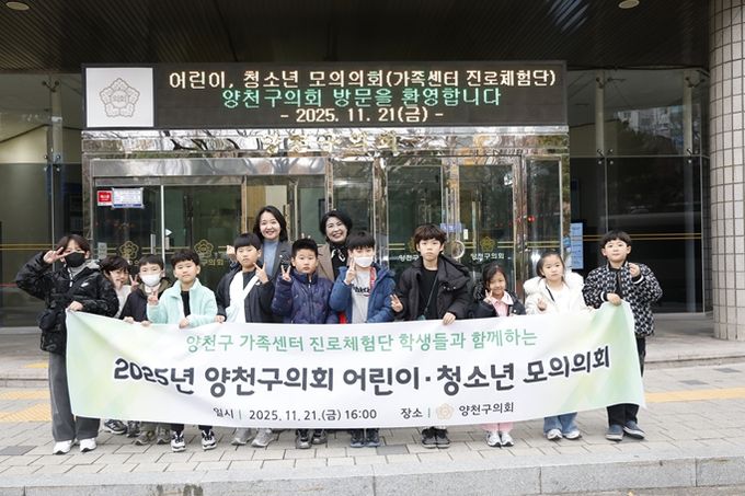 (포탈뉴스통신) 서울시 양천구의회는 11월 21일 오후, 본회의장과 상임위원회실에서 양천구 가족센터 진로체험단 소속 초등학생 14명을 대상으로 ‘2025년 어린이·청소년 모의의회’를 개최했다.