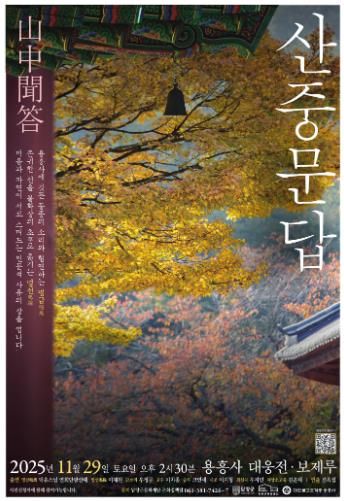 (포탈뉴스통신) 담양군문화재단은 오는 11월 29일 토요일 오후 2시 30분, 담양 월산면 용흥사에서 담양 인문콘서트 '산중문답 山中聞答'을 개최한다고 밝혔다.