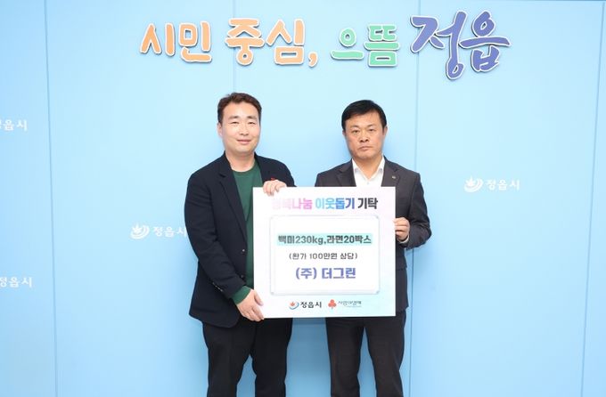 ㈜더그린(대표 김윤섭)은 지난 25일 100만원 상당의 백미 230kg과 라면 20박스를 정읍시에 기탁하며 지역사회 나눔 문화 확산에 동참했다.