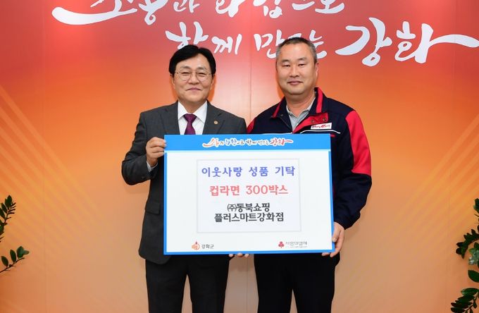 (포탈뉴스통신) 강화군은 ㈜동북쇼핑 플러스마트(대표 백창헌)가 27일 사회복지공동모금회를 통해 컵라면 300박스를 강화군에 기탁했다고 밝혔다.