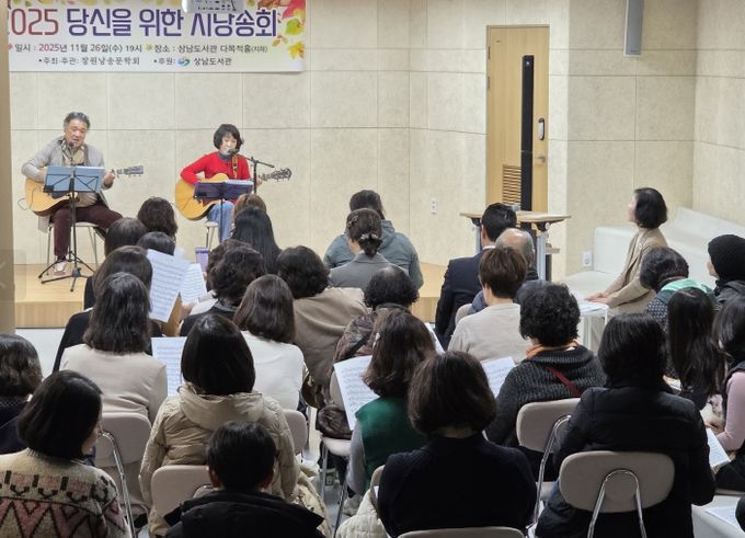 (포탈뉴스통신) 창원특례시 상남도서관(과장 강문선)은 26일 오후 7시 상남도서관 다목적홀에서 개최한 ‘당신을 위한 시낭송회’를 성황리에 마무리했다.