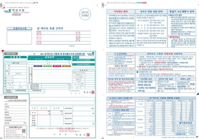 (포탈뉴스통신) 익산시는 시민들이 상·하수도 요금 정보를 보다 쉽게 확인할 수 있도록 고지서를 전면 개편해 오는 12월 고지분부터 적용한다.