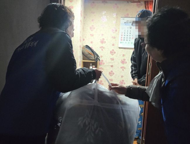 동 보건복지팀은 겨울 이불과 온열매트, 발열내복 등을 취약 가구에 전달하고 한파 대비 국민 행동 요령도 교육했다.