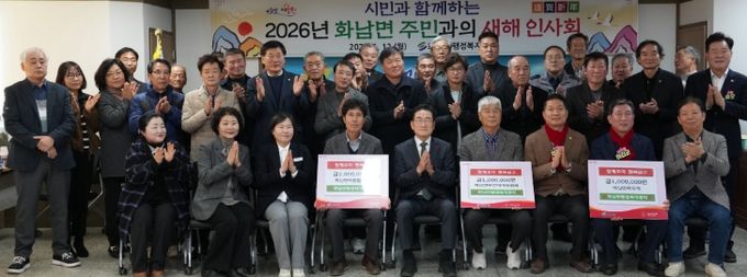 (포탈뉴스통신) 화남면은 지난 12일 열린 주민과의 새해 인사회에서 이장협의회, 주민자치위원회, 목요회가 관내 취약계층을 돕기 위해 각 100만원씩 총 300만원의 성금을 함께모아 행복금고에 기탁했다고 밝혔다.