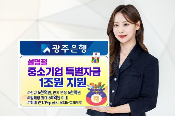 (포탈뉴스통신) 광주은행은 설 명절을 앞두고 자금 운용에 어려움을 겪는 지역 중소기업 및 소상공인을 위해, 1월 15일부터 2월 27일까지 총 1조 원 규모의 ‘2026년 설 명절 중소기업 특별자금’을 지원한다고 밝혔다.