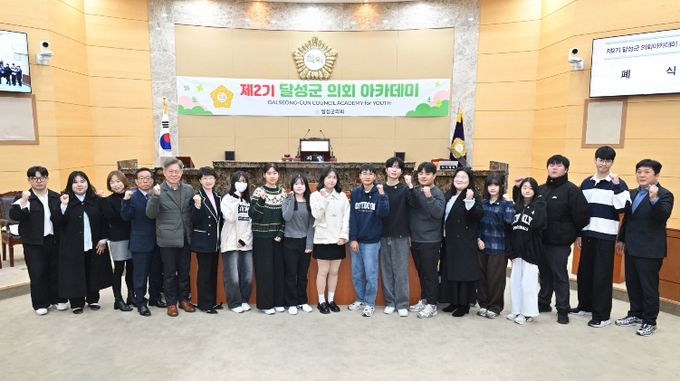 (포탈뉴스통신) 달성군의회는 20일 달성군의회 본회의장에서 ‘달성군의회 제2기 청소년 의회 아카데미’를 개최했다. '의회 아카데미'란 어린이·청소년을 대상으로 의정활동 전반에 대한 체험활동을 통해 지방의회 역할과 기능에 대한 이해를 높이고 대의민주주의를 경험해 보는 프로그램이다.