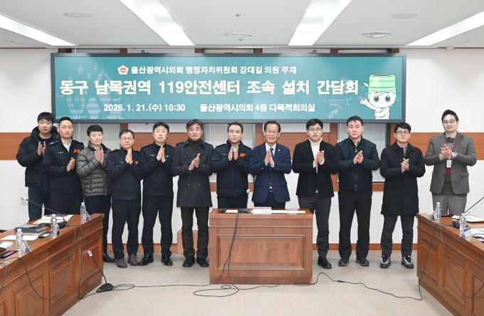 (포탈뉴스통신) 울산시의회 강대길 의원은 21일 의회 4층 다목적 회의실에서 주민, 소방본부, 동부소방서, 울산도시공사 관계자 등과 함께 ‘동구 남목권역 119안전센터 조속 설치’ 간담회를 가졌다.