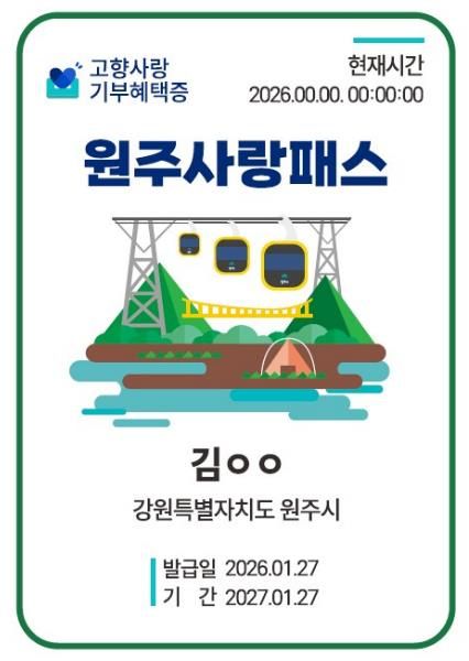 기부혜택증을 소지한 기부자는 소금산 그랜드밸리와 뮤지엄산 등 원주 대표 관광지를 순회하는 시티투어버스 탑승권을 50% 할인된 가격으로 이용할 수 있다. 또한 시티투어버스 코스에 포함된 관광지 입장 요금도 최대 20%까지 할인받을 수 있다.