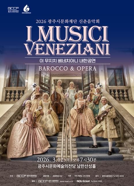 (포탈뉴스통신) (재)광주시문화재단은 2026년 신춘음악회로 이탈리아 베네치아니를 기반으로 활동해온 바로크앙상블 〈이 무지치 베네치아니(I Musici Veneziani) 내한공연 – Barocco & Opera〉를 개최한다. 이번 공연은 베네치아 황금시대의 음악과 문화를 무대 위에 생생히 재현하며, 관객들에게 클래식을 통한 특별한 시간여행을 선사할 예정이다.