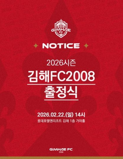 (포탈뉴스통신) K리그2 무대에 첫 도전장을 내미는 김해FC2008(이하 김해FC)이 오는 22일 오후 2시, 롯데호텔앤리조트 김해에서 ‘2026시즌 출정식’을 개최한다.