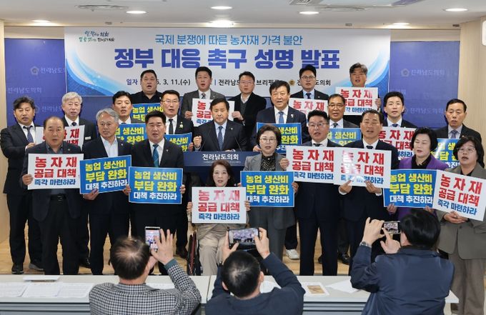 전남도의회 차영수 의원(더불어민주당, 강진)은 3월 11일 도의회 브리핑룸에서 ‘국제 분쟁에 따른 농자재 가격 불안, 정부 대응 촉구 성명서’를 발표했다.