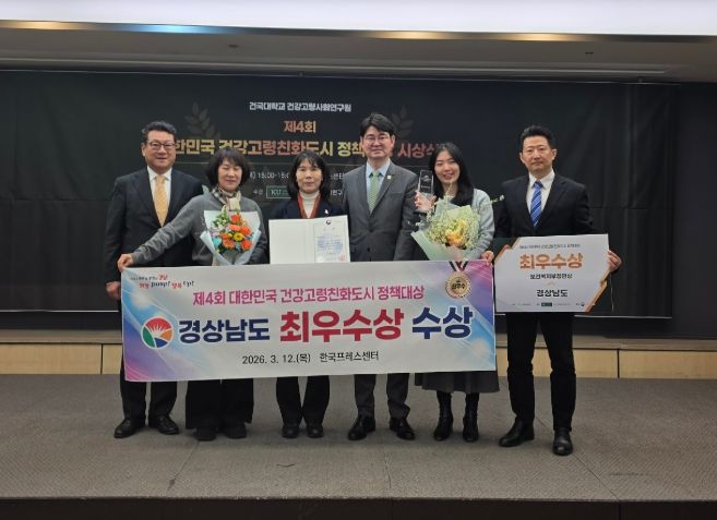 (포탈뉴스통신) 경상남도는 건국대학교 건강고령사회연구원이 주최하고 보건복지부가 후원하는 ‘제4회 대한민국 건강고령친화도시 정책대상’에서 유일하게 광역자치단체 최우수상을 수상했다고 밝혔다.