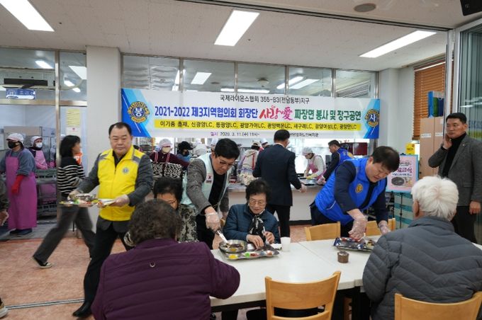 (포탈뉴스통신) 광양시는 3월 11일 국제라이온스협회 355-B3(전남동부)지구 2021-2022회기 제3지역 협의회 회장단이 중마노인복지관에서 지역 어르신들을 위한 ‘사랑愛 짜장면’ 봉사활동을 실시했다고 밝혔다.