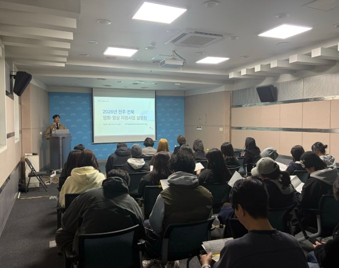 (포탈뉴스통신) 전주시와 (사)전주영상위원회는 17일 전주정보문화산업진흥원 세미나실에서 지역 영화인과 영화 관련 단체 관계자, 관련 학과 전공 대학생 등 30여 명이 참석한 가운데 ‘2026 전주 영화·영상 지원사업 현장 설명회’를 개최했다.