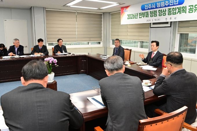 (포탈뉴스통신) 진주시는 18일 시장을 단장으로 부시장과 국·소장, 감사관으로 구성된 ‘청렴 추진단’이 참석한 가운데 ‘2026년 반부패 추진 계획 공유를 위한 청렴 추진단 회의’를 개최했다고 밝혔다.